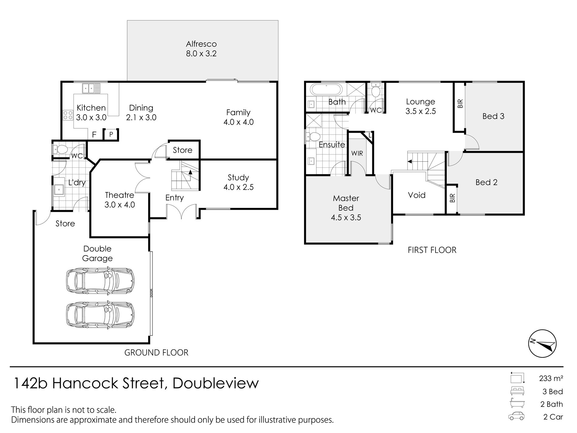 The second story void creates a light, airy space that connects through to a third living area, with ducted evap air conditioning and mood lighting throughout the top floor, this space will tick all the boxes. Offering a little more privacy, the master suite with large ensuite and walk-in robe is separate from bedrooms 2 and 3 which are also generous in size and complete with built in robes.